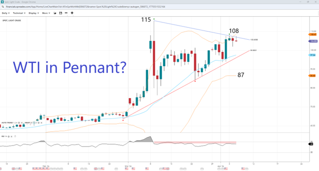 WTI Consolidates within Pennant-Like Pattern