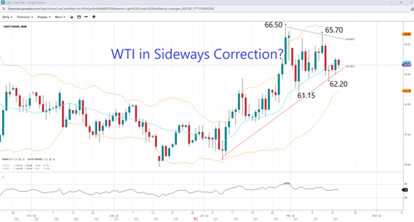 WTI has had a somewhat volatile start to the year, first falling to the $55 per barrel range after the US captured Venezuela's Maduro and then jumping over $65 as Trump's attention turned to Iran. Prices have somewhat stabilised in February as both Tehran and Washington signal they are willing to talk after mass protests in Iran have been quelled. amid price action while the US was on holiday and ahead of high-stakes talks between the US and Iran on Tuesday. Lower liquidity with the world's largest crude buyer, China, away for holiday this week, could also contribute to higher volatility in the asset. As its representatives were set to sit down in Geneva with US counterparts, Iran initiated military drills in the Strait of Hormuz, which controls around one-fifth of the global crude supply. Meanwhile, US President Donald Trump has continued to talk about his preference for regime change in Tehran.