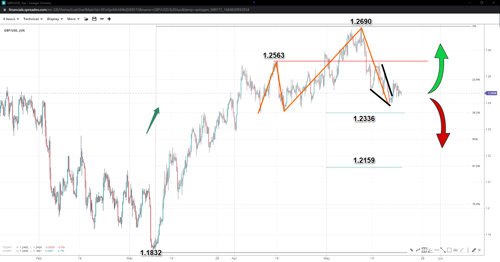 The short-term pattern shows a wedge that might have completed at $1.2398 unless bears go for a double bottom by the 38.2% Fibonacci of the $1.1832-$$1.2690 leg. In that vein, any upside is expected to be restricted to a correction only. Otherwise, the H&S might have been completed already.