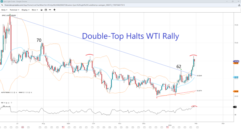 • WTI crude oil is on track to surge by over 11% in January, to near $65 per barrel, despite pulling back on Friday amid hawkish Fed nominee speculation.