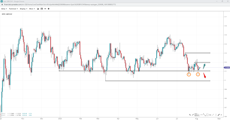 GBP/CHF received rejection 1.11, where bulls have been seen repelling bearish bets several times. Prevailing will increase the chances of crossing past the 1.12 handle, paving the way to 1.13. Price could fall as low as 1.10 to invalidate the range low, though, with a move under there likely to settle at 1.0947.