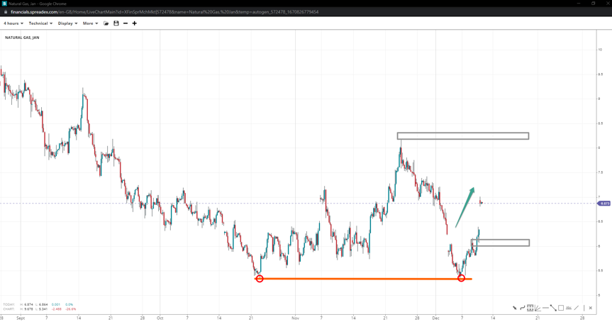 Natural gas formed a double bottom at 5.30, bouncing for some respite towards the 7.00 handle. Breaking past the short-term resistance might bring 8.00 and the peak at 8.20 back into the plan. But if the swing at 6.20 weakens, it might expose 5.40 and even 5.00.