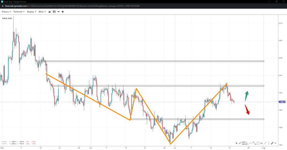 Gold found resistance shy of $1990/oz, increasing chances of an inverse H&S pattern with a leg down to  $1940/oz. Soaring higher might let bulls reclaim 2k, but they will unlikely arrive at  $2020/oz.