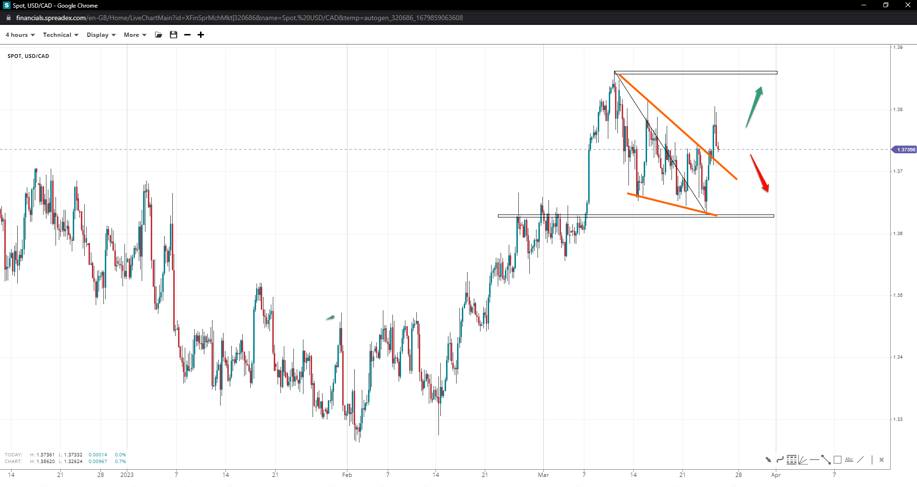 USD/CAD fell lower to complete what appears to be a pennant or wedge, down at 1.3630. If bulls maintain prices above the wedge trendline near 1.37, an attempt at the measured-move target of 1.3966 might be seen, should the peak of 1.3862 give way. Otherwise, we might see the lower 360s again.