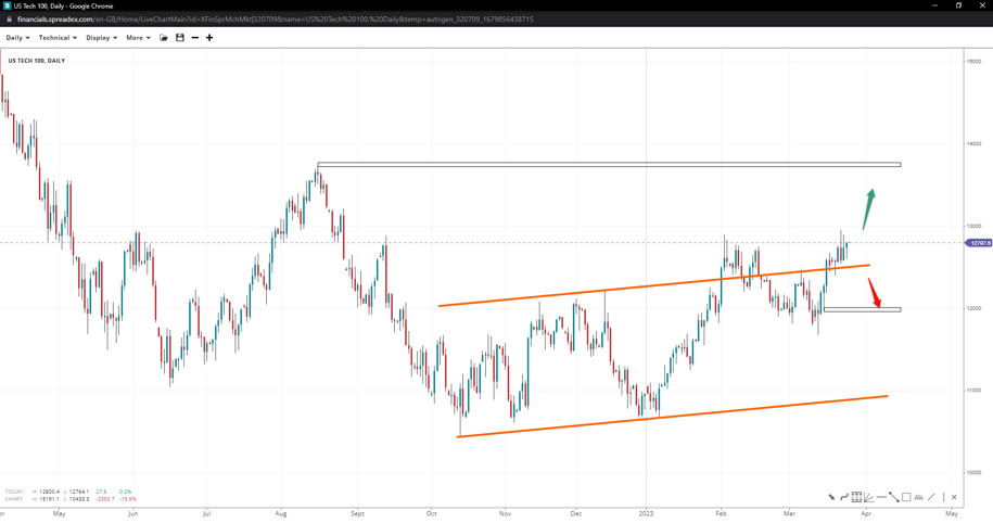 US TECH attempted a comeback at the upper end of an ascending channel, increasing chances of a respite towards 13720, but doable only if it sustains 13k. A failure or break within the channel might open the door to 12k.