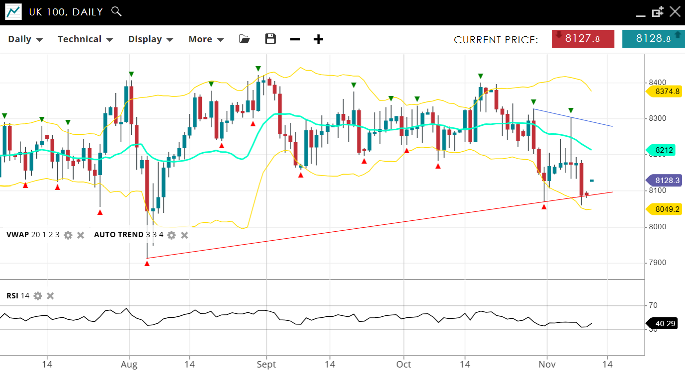 UK 100 | Neutral | Consolidation | 8128 | 8212 | 8049 | 8374 | 40 |