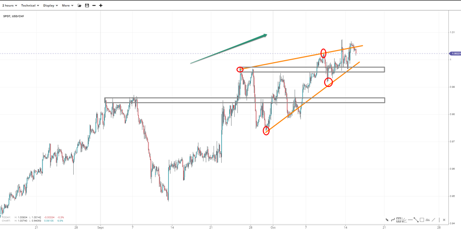 USD/CHF spiralled upwards in light of a rising wedge pattern, which seems complete. If bulls retain parity, 1.0100 is the next target below 1.0200. But if the price slides below the critical level and the 0.9970 swings low, a selloff towards 0.9870 support is probable.