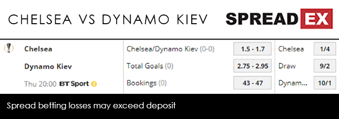 Arsenal are in 5th place in the Premier League, and would be leapfrogged by Chelsea if the Blues win their game in hand against Brighton. And though a win against United this weekend would do wonders for their top 4 chances, they’ll be riding high after their Parisian miracle. They could do, then, with having the Europa League as an alternative route into the Champions League next season. Rennes, mid-table in Ligue 1, scraped through the opening stages, losing 3 and winning 3 in a group that contained Dynamo Kiev, Astana and Jablonec. They were more confident in the last-32; though they twice gave up the lead in the 1st leg, a 3-1 win at Real Betis saw them pick up a 6-3 victory on aggregate. Though the same was said of the Gunners’ lifeless trip to BATE Borisov, the visitors should come out of France with the advantage. Spreadex are offering an Arsenal/Rennes (h) Goal Supremacy spread of 0.4-0.6 alongside a Total Goals spread of 2.55-2.75. A bit later, will Chelsea’s Maurizio Sarri continue to cling on his job with a victory against Dynamo Kiev, at 8pm on BT Sport 2? With one foot in the unemployment line, Sarri bought himself some time with the Blues’ 2-0 triumph over Tottenham, following that up with a narrow 2-1 win at Fulham.