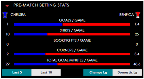 To see all the Chelsea v Benfica betting stats and form, visit our pricing page to view our Pre-Match betting stats table or hover over/tap the chart image to see previous outcomes for that particular market.